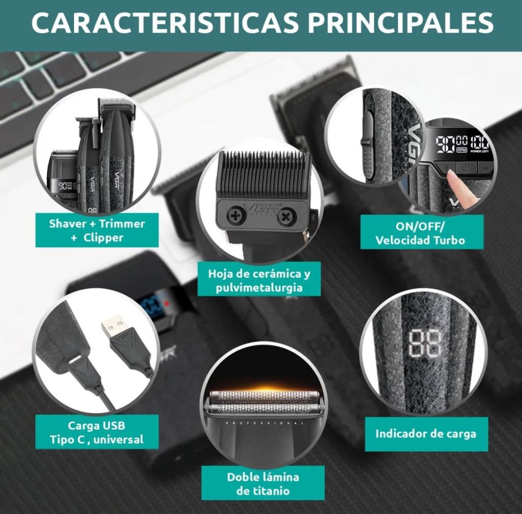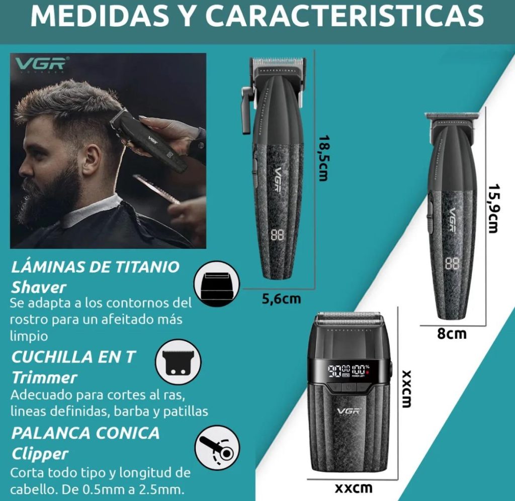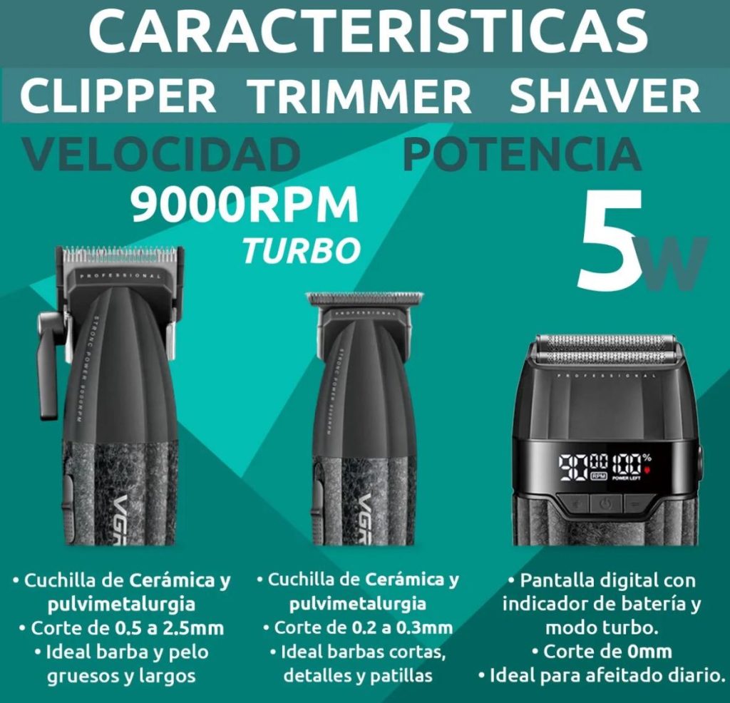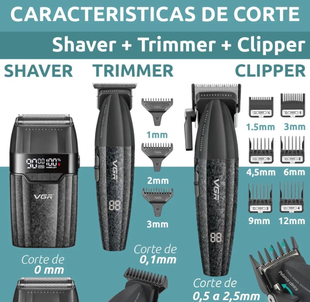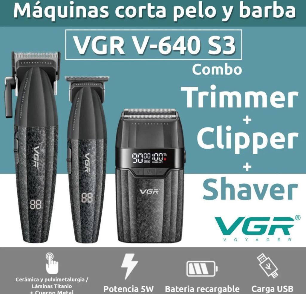 Set 3en1 Vgr V-640 S3 Cortadora Pelo Afeitadora 9000rpm Bldc